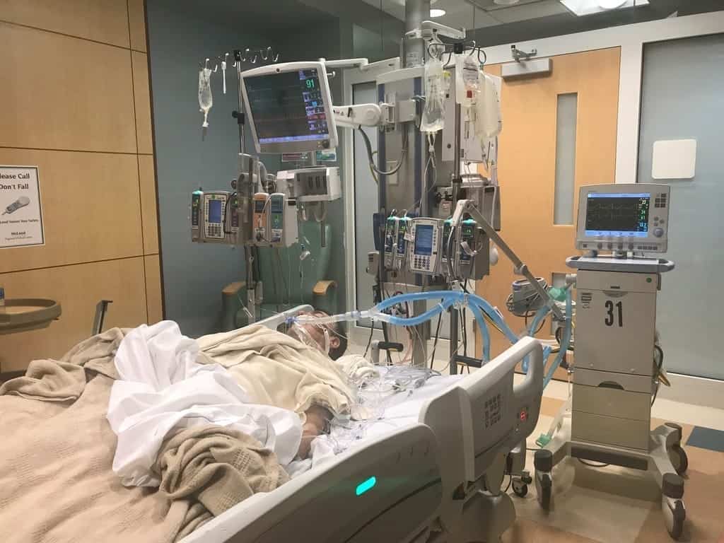 June 11, 2017.  On the ventilator.  Result of a Widow maker heart attack on a local golf course.